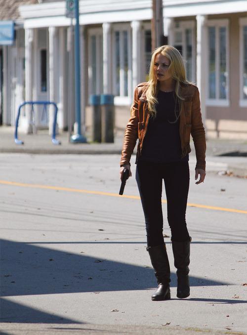 "Frozen" realmente está mexendo com a série, depois da mudança de figurino de Hook, e de Emma aparecer com uma jaqueta dourada (luto eterno red leather), agora Jennifer Morrison aparece usando mais uma jaqueta, dessa vez, AZUL, veja: